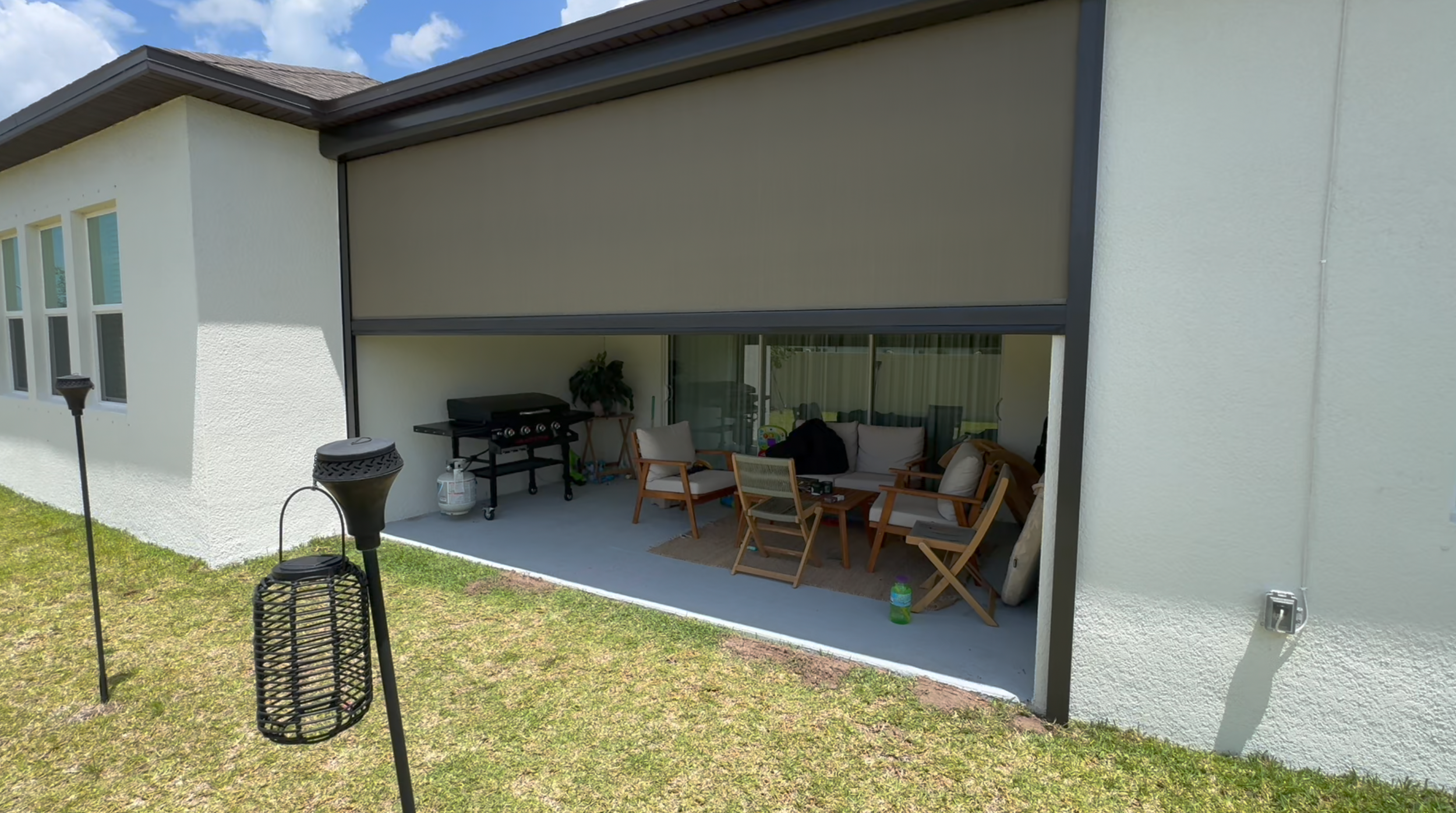 Custom retractable screens designed for comfort, shade, and bug protection.